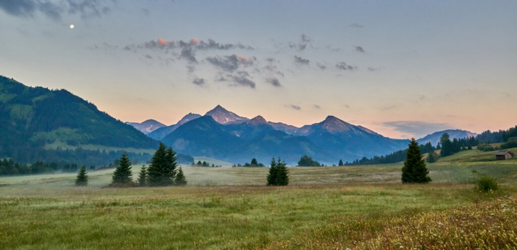 <Das Erlebnis "Leichte Alpenüberquerung" starten wir in Bad Hindelang. Von dort geht es immer stetig bergan dem Wildbach entlang bis wir den Ort Oberjoch, der als Deutschlands höchstgelegens Ski- und Bergdorf beworben wird, erreichen. Diesen lassen wir aber bald wieder hinter uns und überqueren dann die Grenze zu Österreich. Im Tannheimer Tal angekommen geht es auf ebenen Wegen bis in unsere heutige Unterkunft.