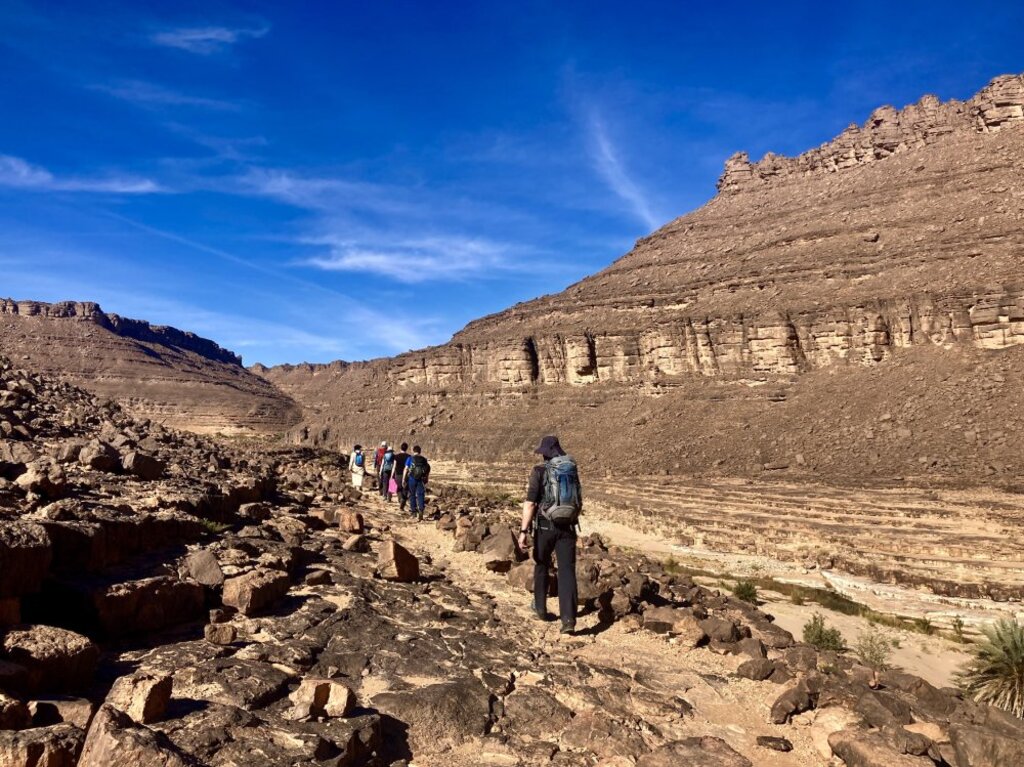<Nach einem kurzen Transfer erreichen wir die Gueltas von Idaran. Die eindrucksvolle Landschaft ist geprägt von ihren natürlichen Wasserbecken, die in Schluchten oder hinter Felswänden verborgen liegen. Wir erkunden ein weit verzweigtes Netz von Wasserläufen, die der Fels über Jahrtausende geformt hat, streifen durch Schilfzonen und bewundern die bizarren Felsformationen. Ein heutzutage nur noch zu Erntezeiten von Nomaden genutztes Zeriba-Dorf vermittelt uns einen lebendigen Eindruck davon, wie das Leben an diesem ehemaligen Knotenpunkt der Karawanen einst ausgesehen haben könnte. -