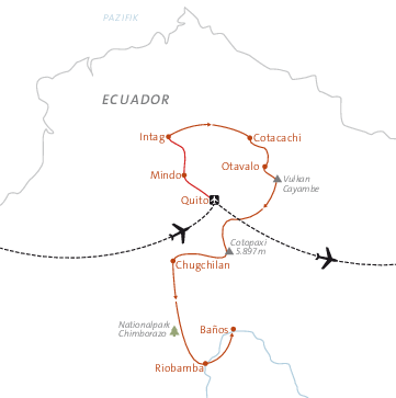 Imposante Vulkanriesen, dichte mystische Nebelwälder, vielfältige Nationalparks und idyllische Bergdörfer erkunden wir per E-Mountainbike überwiegend abseits touristischer Pfade. Wir verlassen die Hauptstadt Quito und dringen in den Süden bis zu den majestätisch empor ragenden Vulkangipfeln des Cotopaxi und Chimborazo vor. Mit dem E-Bike meistern wir ohne Anstrengung jeden Anstieg und nach spannenden Downhillfahrten entspannen wir in heißen Thermalquellen, besuchen bunte Märkte, wandern zu türkis blauen Seen, begegnen den herzlichen Einheimischen und genießen deren kulinarische Köstlichkeiten.