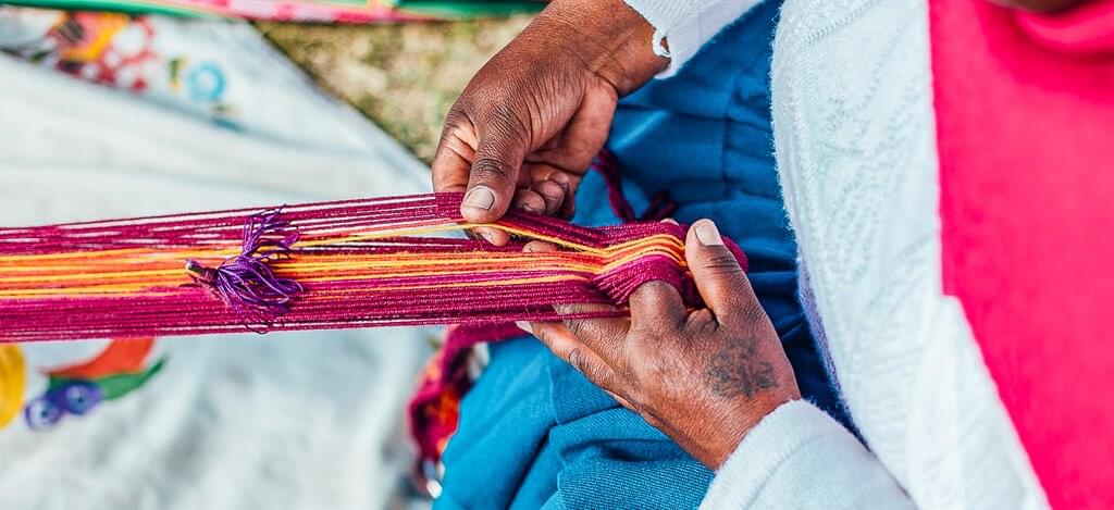 <Wir fahren nach Candelaria, einem Dorf, das für seine handgefertigten Tarabuco-Textilien bekannt ist. Die Landschaft wechselt sich auf dem Weg dorthin zwischen weiten Weiden und charmanten Städtchen wie Puca Puca ab. In Candelaria angekommen, besuchen wir eine Weberfamilie und lassen uns in die traditionelle Webkunst einführen. Nach einem typischen Mittagessen kehren wir nach Sucre zurück. -