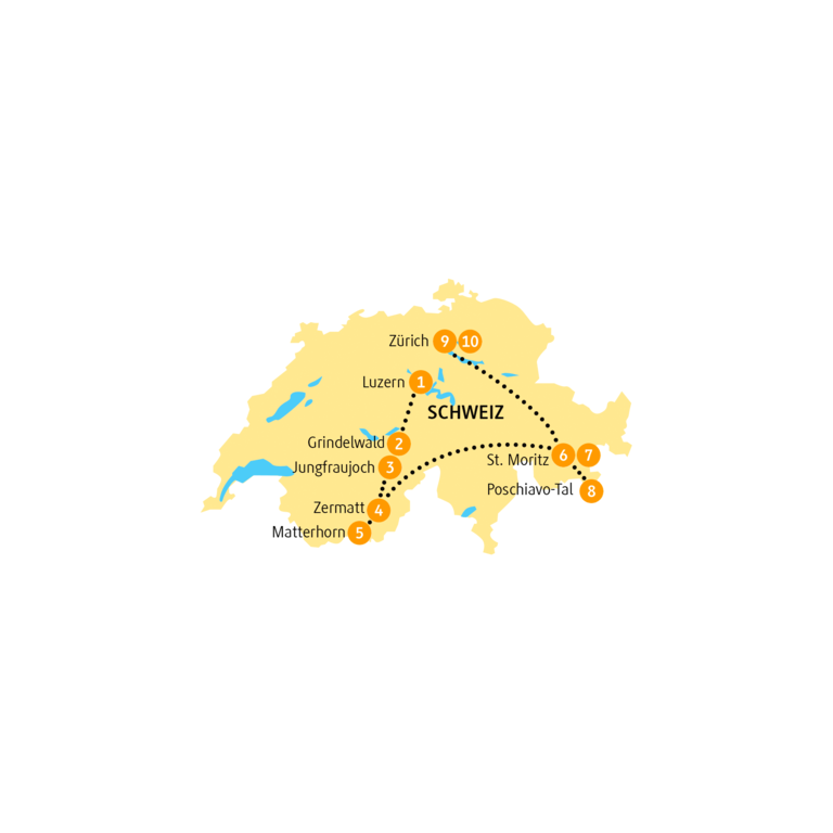 <Die Schweizer Bahn ist weit bekannt für ihre Pünktlichkeit und Zuverlässigkeit. Das Schienennetz ist bestens ausgebaut, sodass selbst entlegene Gegenden gut zu erreichen sind. Da ist klar, dass wir auf der Schiene weiterreisen. Wir fahren auf der alten Lötschbergstrecke mit ihrem beeindruckenden, rund 14 Kilometer langen, Tunnel ins Rhonetal, genauer in das beschauliche Dorf Ausserberg. Das Rhonetal ist ein typisches alpines Trockental und tatsächlich eine der trockensten Regionen der Schweiz. Geschützt von Bergketten im Norden und Süden fällt hier besonders wenig Niederschlag und stellt die Landwirtschaft seit jeher vor Herausforderungen. Die Bewohnerinnen und Bewohner schufen daher kilometerlange Wasserkanäle, sogenannte Suonen, die Wasser von Bergbächen abzweigen und so die Bewässerung von Feldern und den Weinanbau ermöglichen. Von Ausserberg wandern wir auf dem Walliser Sonnenweg begleitet vom stetig plätschernden Wasser der Suonen nach St. German. Lasse den Blick über die Weinberge zum Fluss hinab ins Tal schweifen. Du spürst sicher sofort, warum diese sonnenverwöhnte Region die Wahlheimat des Dichters Rainer Maria Rilke war. Nach einer Mittagspause setzen wir unsere Fahrt nach Zermatt fort. Das Matterhorn, das Wahrzeichen der Schweiz, ist hier schon zum Greifen nah. Genieße den Abend in dem autofreien Bergdorf, bevor wir uns Morgen nah an den ikonischen Bergriesen heranwagen. Wir empfehlen festes Schuhwerk für die heutige Wanderung. Die leichte Wanderung von Ausserberg nach St. German führt über eine Strecke von etwa 4 Kilometern und dauert etwa 1½ Stunden (ohne Pausen). Du steigst hierbei etwa 100 Höhenmeter auf und 300 Höhenmeter ab. -