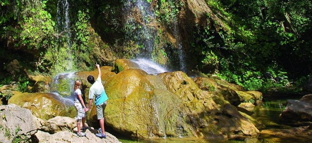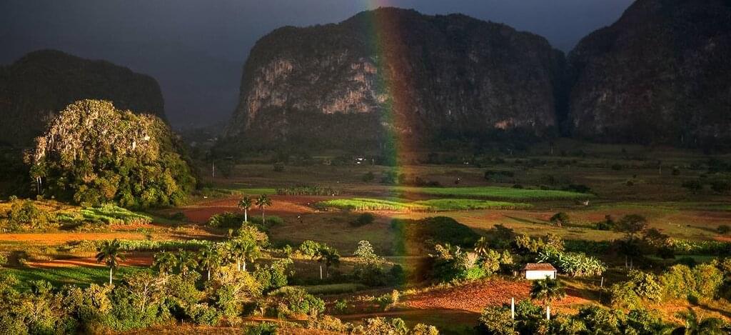<Heute fährst du auf der Tabakroute Richtung Pinar del Río, die grünste Provinz Kubas mit den besten Tabakböden der Welt. Die Landschaft ist geprägt von beeindruckenden Kalksteinfelsen, den sogenannten Mogotes. Unterwegs dorthin machst du einen Halt im Orchideengarten von Soroa, der größte seiner Art in Kuba, mit über 800 verschiedenen Arten. Danach besuchst du den Wasserfall "Salto de Arco Iris" mitten im tropischen Regenwald von Soroa. Über eine Treppe von 279 Stufen gelangst du zu einem erfrischenden Naturpool. Mittags besuchst du das Gemeinschaftsprojekt „El Patio de Pelegrín“, wo Kunst und Kultur gefördert werden. Hier genießt du ein traditionelles Essen im Garten. Zum Abschluss hältst du an einem Aussichtspunkt die perfekte Gelegenheit, den Blick über die Mogotes schweifen zu lassen und die atemberaubende Schönheit des Viñales-Tals in unvergesslichen Fotos festzuhalten. Der Wasserfall führt besonders zur Regenzeit von Mai - Oktober viel Wasser. Abhängig vom Wasserstand ist es möglich hier Baden zu gehen. In anderen Monaten kann es sein, dass der Wasserfall deutlich weniger Wasser führt. -