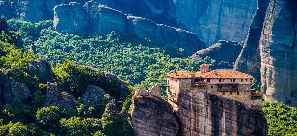 <Am Morgen reist du zunächst nach Diakopto am Golf von Korinth. Dieses kleine Örtchen ist vor allem für die Zahnradbahn nach Kalavryta bekannt. Auf der 22 Kilometer langen Strecke fährst du durch die Vouraikos-Schlucht und überwindest dabei 750 Höhenmeter. Eine langsame, aber spannende Fahrt durch Schluchten und Tunnel und vorbei am historischen Kloster Mega Spileo, was du nach der Mittagspause in Kalavryta auch noch besichtigst. Das Kloster hängt wie ein Schwalbennest an einer 190 Meter hohen Felswand und bietet skurrile Fotomotive. Nach der Besichtigung gelangen wir über die Rio-Andirrio-Brücke, eine der größten Schrägseilbrücken der Welt, vom Peloponnes zum griechischen Festland. In der gemütlichen Kleinstadt Arachova am Fuße des Parnass-Gebirges hast du die heutige Tagesetappe erreicht und checkst im Hotel ein. -