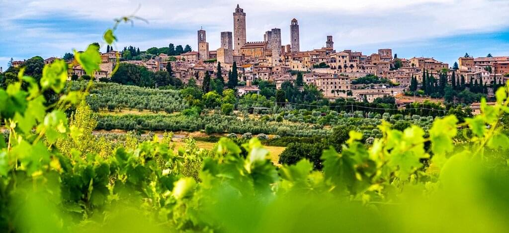 <Der Weg nach San Gimignano führt durch die typisch anmutige Hügellandschaft der Toskana vorbei an Weinreben und Olivenbäumen, soweit das Auge blickt. Von weitem schon wirst du die Silhouette der Stadt erblicken. Von den 72 Türmen, die die Stadt im Mittelalter einmal hatte, existieren heute noch 13. Zähle doch mal, wie viele du siehst! Obwohl die Stadt recht klein ist, wäre eine Liste der sehenswerten Orte sehr lang, denn praktisch der gesamte Ort ist eine Art mittelalterliches Freilichtmuseum! Gegen Mittag bist du zu Gast bei Familie Fioroni. Die drei Brüder Umberto, Amcio und Bernardo betreiben in zwei Generationen ein Bio-Weingut mit angeschlossener Land- und Gastwirtschaft. Auf einem Rundgang erfährst du viel Wissenswertes über den Anbau der hiesigen Trauben und über die Herstellung des berühmten Chiantis. Im Anschluss wirst du in herrlicher Umgebung und prächtigem Blick auf San Gimignano mit Spezialitäten der Region verwöhnt. Der dazu gereichte Wein lässt dich zweifelsohne das Dolce Vita in vollen Zügen auskosten. Gut gestärkt und voller neuer Eindrücke kannst du dich auf den nächsten Höhepunkt freuen: einen Stadtrundgang durch die charmante Stadt Volterra. Wusstest du, dass Linus aus Volterra der zweite Papst nach Petrus war? Volterra blickt auf eine über 3000-jährige Geschichte zurück. Wusstest du, dass Volterra für seine jahrhundertealte Alabaster-Handwerkskunst berühmt ist? Diese Kunst ist untrennbar mit der Stadt verbunden! Sie wird seit der etruskischen Zeit verarbeitet und ihre Tradition wird von Generation zu Generation weitergegeben. -