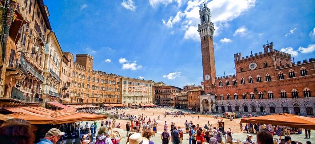 <Heute nimmst du Abschied von Florenz und fährst weiter mit dem Zug nach Siena. Die mittelalterliche Stadt liegt malerisch inmitten endloser Weinberge. Hier spazierst du durch enge Gassen, vorbei an Türmen und Adelspalästen. In der Mitte der Stadt steht der aus schwarzem und weißem Marmor gebaute Dom, der mit seiner gotischen Architektur imponiert. Ende des Rundgangs ist auf der Piazza del Campo, auf der seit 1644 zweimal jährlich ein historisches Pferderennen, der sogenannte »Palio« ausgetragen wird. Was in großen Teilen Italiens der Fußball ist, das ist in Siena die Leidenschaft für den Palio. Die unterschiedlichen Stadtviertel, die sogenannten Contraden, treten hierbei gegeneinander an und verwandeln die ganze Stadt in ein historisches Stadtfest. Du schaust dir die Geschichte des Palio ein bisschen genauer an und stattest einem Museum und Mitglied einer Contrada einen Besuch ab. Am Nachmittag geht es weiter nach San Galgano, zur Ruine der Zisterzienserabtei. Gleich wirst du erfahren, was es mit der Legende des Schwerts im Stein auf sich hat. -