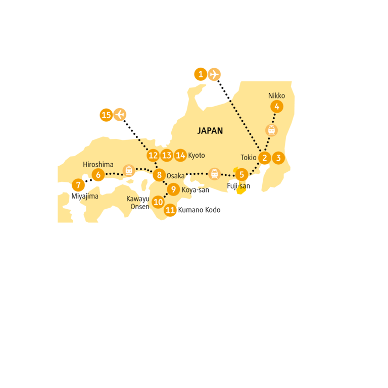 Heute startet dein Flug zu der faszinierenden Inselgruppe im Pazifik. In Japan erwartet dich eine vielseitige Landschaft und eine noch abwechslungsreichere Kultur, die spätestens seit dem ersten Kaiser Jimmu vor über 2.500 Jahren einzigartige Schätze hervorgebracht hat. Auf ins sagenhafte Land der Samurai!