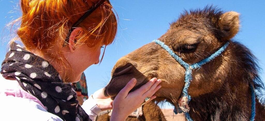 Am frühen Morgen verlässt du Fès und fährst zunächst durch große Zedernwälder des Mittleren Atlas. Unterwegs hältst du nahe dem Ort Azrou an, um dir in einem Zedernwald die Beine zu vertreten. Mit etwas Glück kannst du auch die hier beheimateten Makaken beobachten. Anschließend setzt du deine Fahrt in Richtung Süden fort. Die grünen Wälder und Berge des Nordens weichen jetzt mehr und mehr schroffen Felsformationen des Hohen Atlas. Gegen Mittag erreichst du Midelt und am Nachmittag durchquerst du die faszinierende Landschaft des Ziz-Tals. Auf dem weiteren Weg zu den Ausläufern der Sahara wechseln sich wüstenartige Landschaften und Oasen ab, bis am Horizont die ersten Sanddünen zu erkennen sind. Am frühen Abend erreichst du schließlich den kleinen Ort Merzouga und deine Unterkunft. Wir empfehlen für die Fahrt durch die Berge eine Jacke mitzunehmen, da es aufgrund der Höhenlage recht kühl werden kann.  Bereite dich heute vor, früh aufzubrechen. Deine Reiseleitung wird dir die genaue Uhrzeit vor Ort kommunizieren.