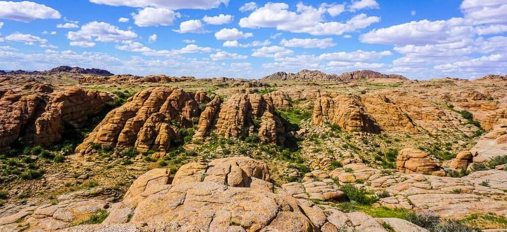 <Auf dem Weg gen Westen in die zentrale Region der Mongolei besuchst du die Ruinen der Festung Khar Bukh Balgas, die ein Zeugnis des Kidan-Reichs aus dem 10. bis 12. Jahrhundert ist. Du fährst weiter nach Gurvanbulag, eine Gegend in der Wald, Berge, einsame Steppen und die Sanddünen der Wüste Gobi zusammentreffen. Dieses einzigartige Gebiet gehört zum Khogno-Khan-Naturreservat. Hier besuchst du eine Nomadenfamilie und übernachtest in einem Jurtencamp, das zu einer Nomadengemeinde gehört. Auf diese Weise kommst du in unmittelbaren Kontakt mit den Bewohnerinnen und Bewohnern und erhältst gleichzeitig tiefe Einblicke in deren Kultur und Alltag. Sei nicht scheu und frage, was du über das Nomadentum wissen möchtest – die Gastfreundschaft und fröhliche Lebensweise der Nomadinnen und Nomaden wird dich begeistern. -