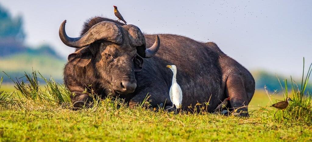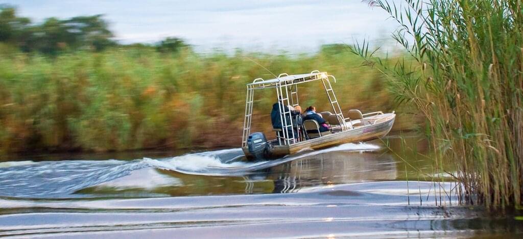 Es wird Zeit für die erste Safari. Am frühen Morgen kommst du auf einer geführten Safari im offenen Geländewagen den Tieren besonders nahe, die nicht so häufig direkt an den Chobe-Fluss kommen. Gerade vormittags grasen die meisten Tiere, sodass die Möglichkeiten für Tierbeobachtungen an Land optimal sind. Löwen und andere Raubkatzen, die sich gern im Schatten der Büsche aufhalten, sind ebenfalls besser zu sehen. Mittags liegen die Tiere faul im Schatten. Du machst es ihnen nach, am besten am Pool deiner Lodge. Am späten Nachmittag steht eine ca. dreistündige Bootsfahrt auf dem Programm, auf der du mit großer Wahrscheinlichkeit Elefanten, Flusspferde, Krokodile und auch eine Vielzahl von Antilopen beobachten kannst, die sich am Chobe-Fluss einfinden. Immer wieder ist es ein ganz besonderes Erlebnis, wenn Elefanten ein Bad nehmen oder mal eben zum anderen Ufer schwimmen, dann guckt nur noch der Rüssel aus dem Wasser heraus. All das erlebst du mit der Begleitmusik großer und kleiner Vögel, unterstrichen vom markanten Ruf des Afrikanischen Schreiseeadlers. An den Safaris im Chobe-Nationalpark nehmen außer dir evtl. auch andere internationale Gäste teil.
