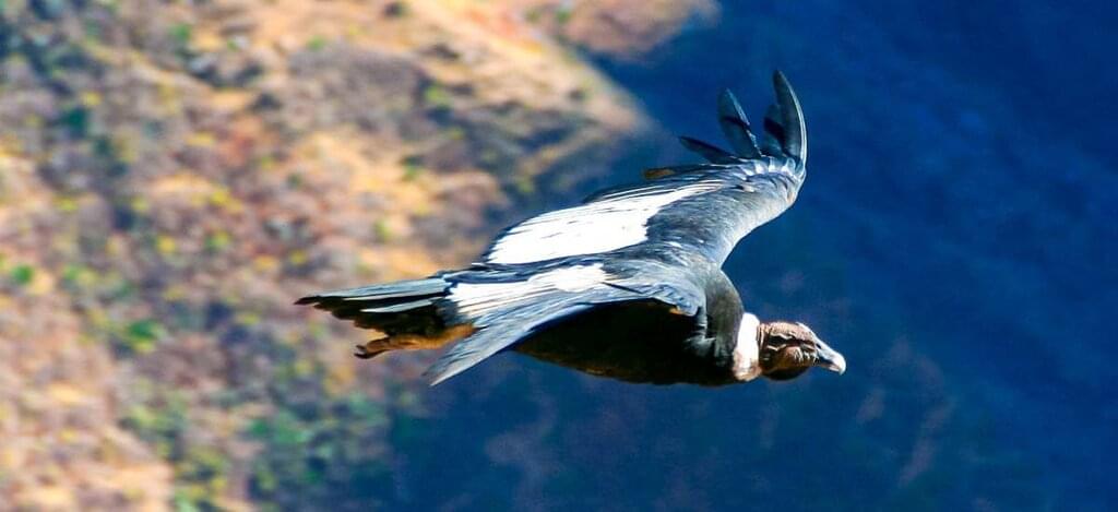 <Endlich ist es so weit! Du wirst den sagenumwobenen Kondor sehen. Vom »Kreuz des Kondors« hast du einen beeindruckenden Blick in die 1.200 Meter tiefe Schlucht. Hier kann man die riesengroßen Vögel, die nur in den Anden leben, am besten beobachten. Es ist ein besonderes Erlebnis, wenn die Kondore durch die warme Luft Auftrieb erlangen und hoch über dem Colca-Tal kreisen. Auf der Weiterfahrt nach Puno werden dir die beeindruckenden Bilder mit Sicherheit nicht so schnell aus dem Kopf gehen. Du hältst noch in Chivay, um über den bunten Markt zu schlendern. Abends erreichst du dann schließlich den größten Süßwassersee Südamerikas. -