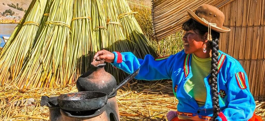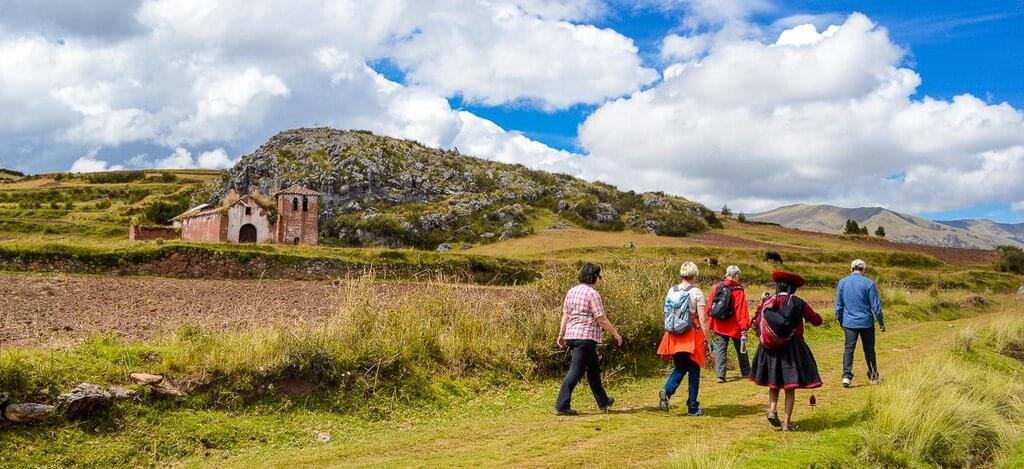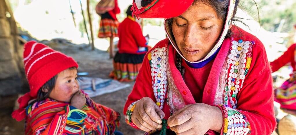 <Am Morgen steigen wir in den Flieger nach Cuzco. Von hier schlängeln wir uns mit dem Bus ins Urubamba-Tal, das auch »Heiliges Tal« genannt wird. Hier finden sich nicht nur die schönsten Inkaterrassen Perus und viele bedeutende Inkastätten, es ist auch erfrischend grün und hier leben rührend herzliche Menschen. In Chinchero besichtigen wir die imposanten Stadtmauern aus der Inka-Zeit und eine in der Kolonialzeit erbaute Kirche, deren Fundamente allerdings ebenfalls schon von den Inka stammen. Das Highlight unseres Tages erwartet uns jedoch etwas außerhalb von Chinchero, in einem typischen Andendorf. In diesem Dorf scheint die Zeit stehen geblieben zu sein und die traditionell gekleideten Bewohnerinnen und Bewohner verströmen noch die ursprüngliche Seele des Landes. Die ca. 30 Quechua-Familien öffnen ihr Herz und ihr Zuhause für uns und ermöglichen uns einen Einblick in den Alltag und die sozialen Verhältnisse in Peru. Als Gegenleistung packen wir mit an, indem wir den Frauen bei der Vorbereitung eines traditionellen Mittagessens helfen. Während das Essen in der Erde erhitzt wird, unternehmen wir zusammen mit ein oder zwei Dorfbewohnerinnen eine kleine Wanderung in der ländlichen Umgebung, um Kräuter zu sammeln. Nachdem wir uns den Bauch vollgeschlagen haben, schauen wir beim Weben zu und können die Sammlung selbstgefertigter Textilien betrachten. Vielleicht entdecken einige von uns hier ein neues Hobby. Bitte packe eine kleine Tasche mit den Dingen, die du für die Tour nach Machu Picchu (Tage 4 und 5) benötigst. Das Hauptgepäck wird von unseren Partnern sicher verwahrt und wir werden es bei unserer Rückkehr nach Cuzco an Tag 5 wieder in Empfang nehmen. Peru Rail schreibt ein maximales Gepäckgewicht von 5 Kilogramm vor, also lass‘ alles, was du nicht brauchst, zurück. -