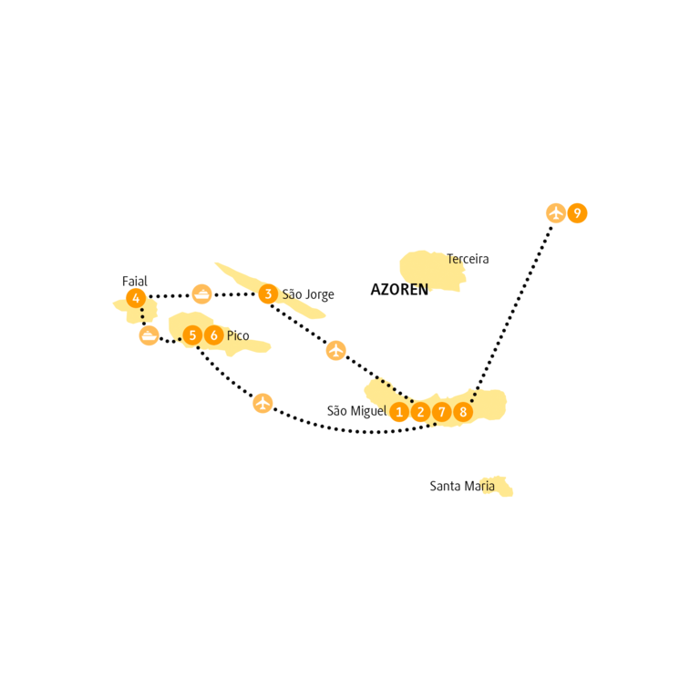 - Inlandsflüge mit SATA von São Miguel nach São Jorge und von Pico nach São Miguel