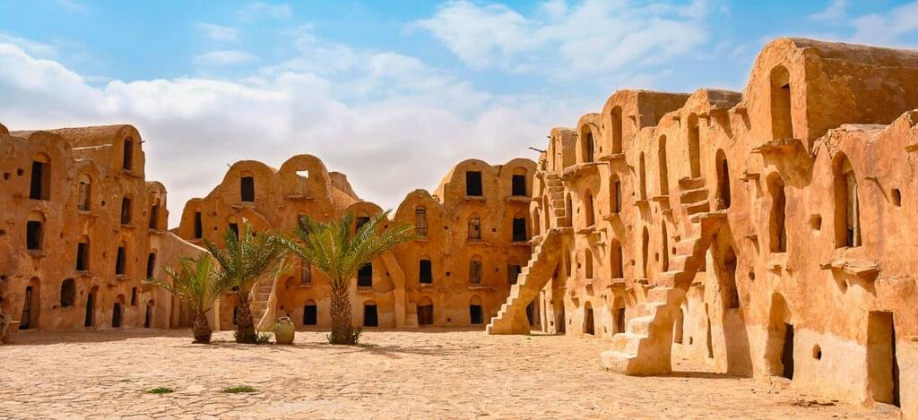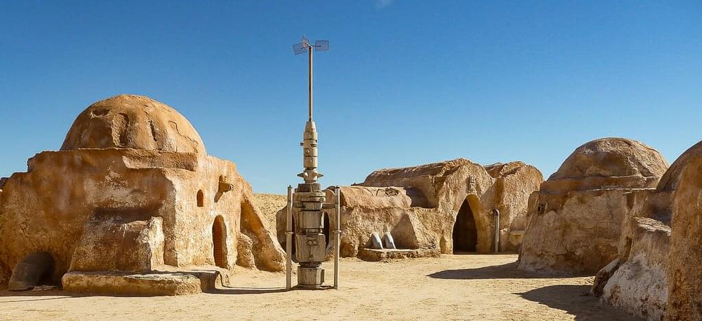<Heute führt dich deine Reise durch die atemberaubenden Bergoasen von Chebika, Tamerza und Mides. Beginne mit einer Wanderung zu den malerischen Wasserfällen von Chebika, wo das Wasser den Anbau von Palmen ermöglicht und üppiges Grün zwischen außergewöhnlichen Gesteinsformationen für spektakuläre Ausblicke sorgt. Tamerza begeistert mit seinen dramatischen Schluchten, die in Mides in eine drei Kilometer lange, tief in die umliegenden Berge eingeschnittene Schlucht übergehen. Alle drei Dörfer bildeten in der römischen Zeit einen Teil des nordafrikanischen Limes. Am Abend führt dich deine Reise ins Herz der tunesischen Wüste, wo du den Zauber eines Sonnenuntergangs bei Mos Espa und dem legendären Lars Homestead erlebst – bekannte Drehorte der berühmten Star-Wars-Saga. -