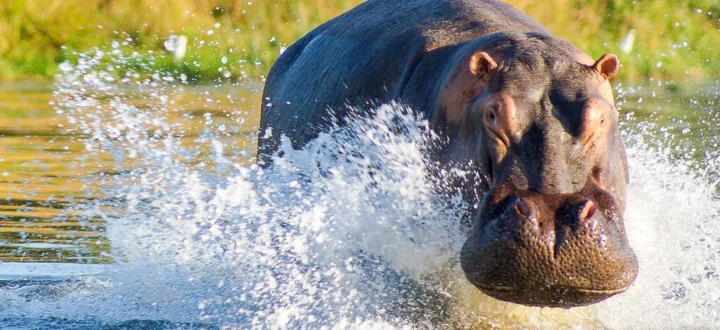 <Heute geht die Safari in Ugandas größtes Schutzgebiet: der Murchison-Falls-Nationalpark. Der Nil teilt den Park in zwei Teile. Obwohl das Gebiet südlich des Flusses weitaus größer ist, leben die meisten Tiere in der hügeligen Savannenlandschaft im Norden. Hier gehst du im Geländewagen auf die Suche nach Elefanten, Büffeln und Löwen. Auch Rothschild-Giraffen und Uganda-Kob-Antilopen leben in großen Populationen hier. Am Nachmittag kannst du dir das Ganze noch einmal vom Wasser aus ansehen: Im Boot geht es über den Nil auf einen Besuch bei Flusspferden und Nilkrokodilen. Ob zu Land oder auf dem Wasser: Untermalt wird dein Besuch mit Arien von mehr als 450 Vogelarten. -