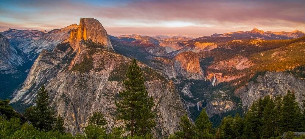 <Frühmorgens erreichen wir den berühmtesten und beliebtesten Nationalpark der Welt: Yosemite. Gegründet 1890 nach den heldenhaften Bemühungen des schottischen Naturschützers John Muir zum Schutz der beeindruckenden geologischen Formationen und der Riesenmammutbäume. Muir war ein Einwanderer in den Vereinigten Staaten und half dabei, die Umweltschutzbewegung ins Leben zu rufen. Unsere Straße führt uns über 3000 m zum Tioga Pass (wenn geöffnet), wo wir die weite hochalpine Wiese von Tuolumne betreten. Schroffe Gipfel und riesige Granitkuppeln ragen über unseren Köpfen auf. Am wunderschönen Tenaya Lake machen wir einen Stopp für eine belebende Wanderung entlang des Ufers. Dann erkunden wir Tuolumne Grove bei einem Spaziergang zu den Riesenmammutbäumen, den größten Bäumen der Welt, die bis zu 100 m hoch und bis zu 3200 Jahre alt werden, und einen Stammdurchmesser von bis zu 17 m haben. Am Nachmittag erreichen wir Glacier Point, den symbolträchtigsten Aussichtspunkt auf Half Dome und das Tal. Das Yosemite Valley ist ein 1000 m tiefes Gletschertal mit hoch aufragenden Granitfelsen, tosenden Wasserfällen und üppigen Wiesen voller zarter Hartriegelbüsche. Die steilen Granitfelsen des Half Dome (2700 m) überragen das Tal. Unsere rustikale Unterkunft befindet sich im Herzen des Yosemite Valley, in den legendären Curry Village Tent Cabins. Abends, wenn die Touristen abreisen, können wir die Einsamkeit des Tals genießen. Wichtig, falls der Tioga Pass geschlossen ist: In manchen Jahren ist der Tioga Pass wegen übermäßiger Schneemengen bis Juli gesperrt (normalerweise öffnet er Ende Mai). Falls der Tioga Pass gesperrt ist, fahren wir auf dem Highway 4 über die Sierra Nevada und besuchen die beeindruckenden Calaveras-Sequoia-Bäume. Die Fahrstrecke umfasst dann ca. 600 km. -