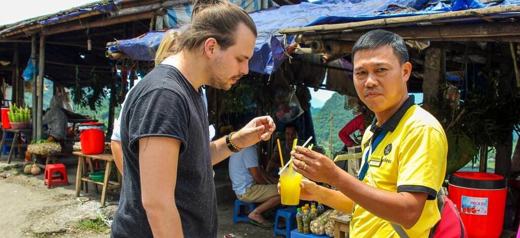 <Nach deiner Landung in Hanoi wirst du bereits von deiner Reiseleitung freudig erwartet. Im Hotel angekommen, bekommst du ein leckeres Frühstück in gemütlicher Atmosphäre. Danach hast du dir erst mal eine Verschnaufpause verdient: Ruhe dich ein wenig aus und schalte in den Urlaubsmodus um. Am Nachmittag wartet dann bereits dein persönlicher Moped-Chauffeur in der Hotellobby auf dich. Nach einer kurzen Einführung heißt es Helm auf und los geht’s! Du entdeckst eine andere Seite der Metropole, abseits der üblichen Touristenpfade, und mischst dich unter die Hanoier. Lerne die Geschichten hinter den Kulissen und winzigen Gassen kennen. Entdecke einheimische Märkte und genieße einen vietnamesischen Kaffee. Warum nicht den berühmten Eierkaffee? Das Rezept für den perfekten Eierkaffee ist ein wohlbehütetes Geheimnis, er schmeckt ein bisschen wie flüssiges Tiramisu. Überzeuge dich selbst! Dein Zimmer im Hotel in Hanoi steht dir für einen sofortigen Check-in zur Verfügung. -