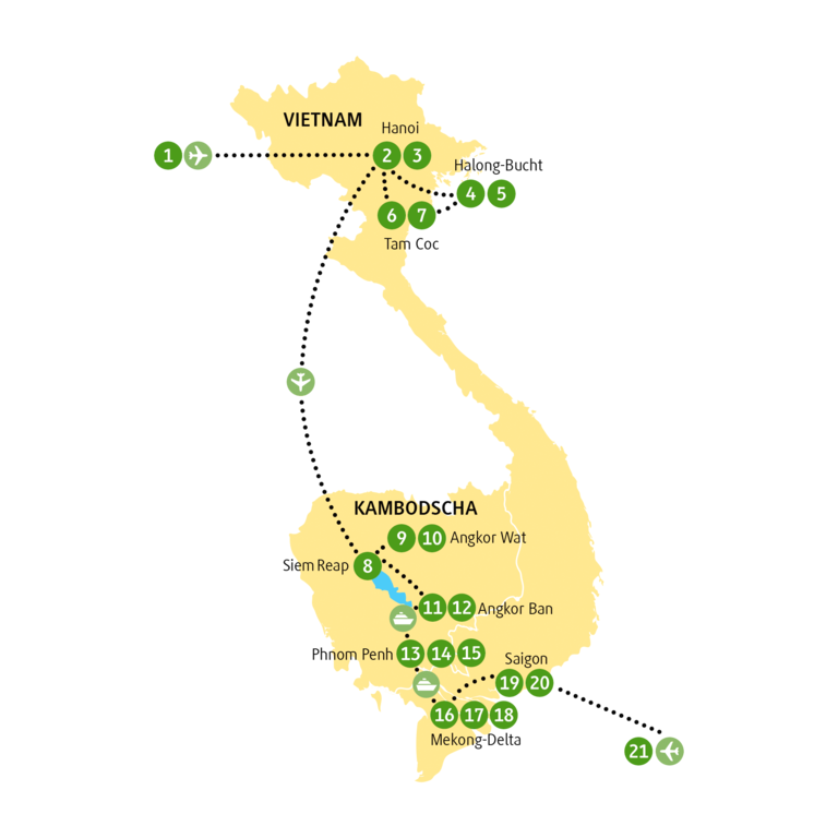 - Linienflug mit Vietnam Airlines nach Hanoi und zurück von Siem Reap (Buchungsklasse N)