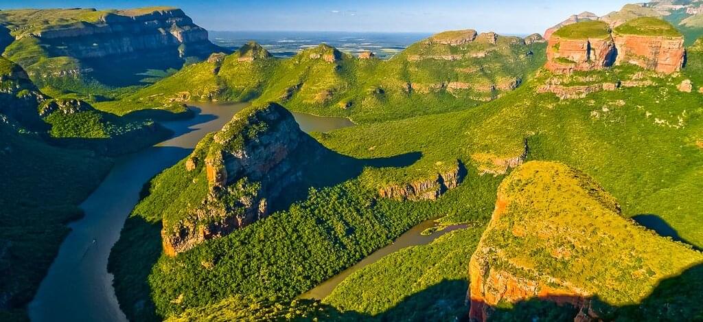 <Heute brichst du zum südlichen Krüger-Nationalpark auf. Unterwegs triffst du immer wieder auf Höhepunkte der Panorama Route. In der Nähe der Mac-Mac-Fälle verlässt du den Bus und läufst das letzte Stück zu den 56 Meter hohen Zwillingswasserfällen. Am God’s Window eröffnet sich eine grandiose Aussicht über das weite Lowveld bis hin zum Krügerpark. Du spazierst ein Stück durch den immergrünen Regenwald. Im weiteren Verlauf siehst du unter anderem die Bourke’s Luck Potholes, bizarre zylinderförmige Felslöcher, die die Strudel des Flusses in den Stein gefressen haben. Höhepunkt ist der grandiose Blyde-River-Canyon mit seiner 800 Meter tiefen Schlucht. Du spazierst am Westrand entlang und blickst dabei auf die riesigen Bergkuppen der Three Rondavels. Dein heutiges Quartier liegt im privaten Marloth-Naturreservat, direkt am Krügerpark. -