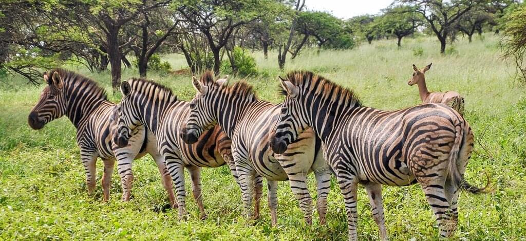 <Frühmorgens startest du mit deiner Reiseleitung und einem fachkundigen lokalen Guide zur ganztägigen Safari. Im offenen Geländewagen streifst du durch die Savanne und das Bergbuschfeld des südlichen Krüger-Nationalparks. Mit etwas Glück begegnen dir neben Gnus, Zebras, Impalas und Warzenschweinen auch die Big Five: Elefant, Nashorn, Büffel, Löwe und Leopard. Am Crocodile River, dem Grenzfluss zum Krügerpark, kannst du viele Wildtiere beim Trinken am Fluss beobachten, mit einem Quäntchen Glück auch Elefanten. Vor dem Abendessen begibst du dich für etwa anderthalb Stunden auf einen Spaziergang über das Lodge-Gelände, um Antilopen, Giraffen und Zebras zu entdecken. Auf allen Safaris im Krüger-Nationalpark brauchst du deinen Reisepass. Wenn deine Reise bis zu 9 Personen umfasst, bist du mit einem Ranger sowie deiner Reiseleitung zusammen in einem Geländewagen unterwegs. Bei 10 bis 12 Personen werden zwei Geländewagen mit je einem Ranger eingesetzt. -