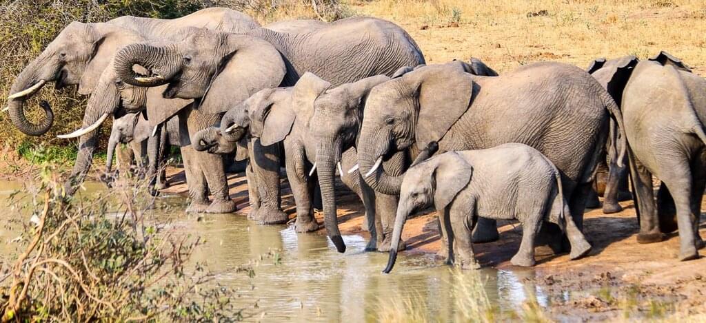 <Am Morgen pirschst du im Reiseminibus etwa drei Stunden durch den Addo-Elephant-Nationalpark und beobachtest die sanften Dickhäuter, die sich oft in großen Herden an den Wasserstellen zum Erfrischungsbad einfinden. In der weitläufigen Grassteppe sichtest du vielleicht sogar die seltenen Spitzmaulnashörner oder auch Löwen. Etwas Besonderes in dieser Region ist der Riesenkäfer Dung Beetle. Sei gespannt, was die Natur Südafrikas zu bieten hat. Gegen frühen Mittag verlässt du den Addo Park und reist weiter zum ebenfalls malariafreien Kariega Game Reserve. In dem privaten Wildpark mit bergiger Landschaft leben neben den Big Five Säugetiere wie Giraffen, Zebras und Antilopen. Am späten Nachmittag brichst du im Jeep zum Fluss auf. Gemeinsam mit einem Ranger gehst du auf die Suche nach den Großen Fünf – also Elefant, Nashorn, Büffel, Löwe und Leopard. Am Fluss angekommen steigst du ins Boot und gehst in kundiger Begleitung etwa anderthalb Stunden auf große Fahrt. Der Fluss ist zahlreichen Vögeln Heimat und Nahrungsquelle. Halte Ausschau nach dem Goliath Reiher, dem größten seiner Art, dem Wasserläufer und dem farbenfrohen Kingfisher. -
