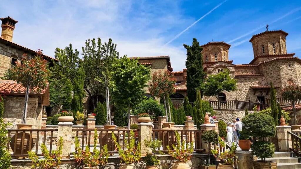 <Vom Dorf Kastraki aus wandern wir durch die beeindruckende Felslandschaft zum Metamorphosis Kloster oder zum Moni Varlaam Kloster (je nach Öffnungszeiten). Eines der beiden Klöster besichtigen wir. Die Meteora Klöster waren früher nur über Strickleitern und Ziehkörbe erreichbar, erst seit 1923 führen Felstreppen hinauf. Unsere Rundwanderung führt uns anschließend vorbei am Agio Pnevma Felsen und endet wieder in Kastraki. Bevor wir nach Litochoron weiterfahren, machen wir in Kalabaka noch Halt für eine Mittagspause. In Litochoron, am Fuße des Olymp-Massivs verbringen wir die nächsten beiden Nächte. -