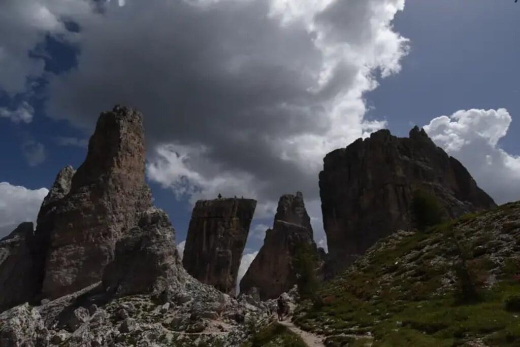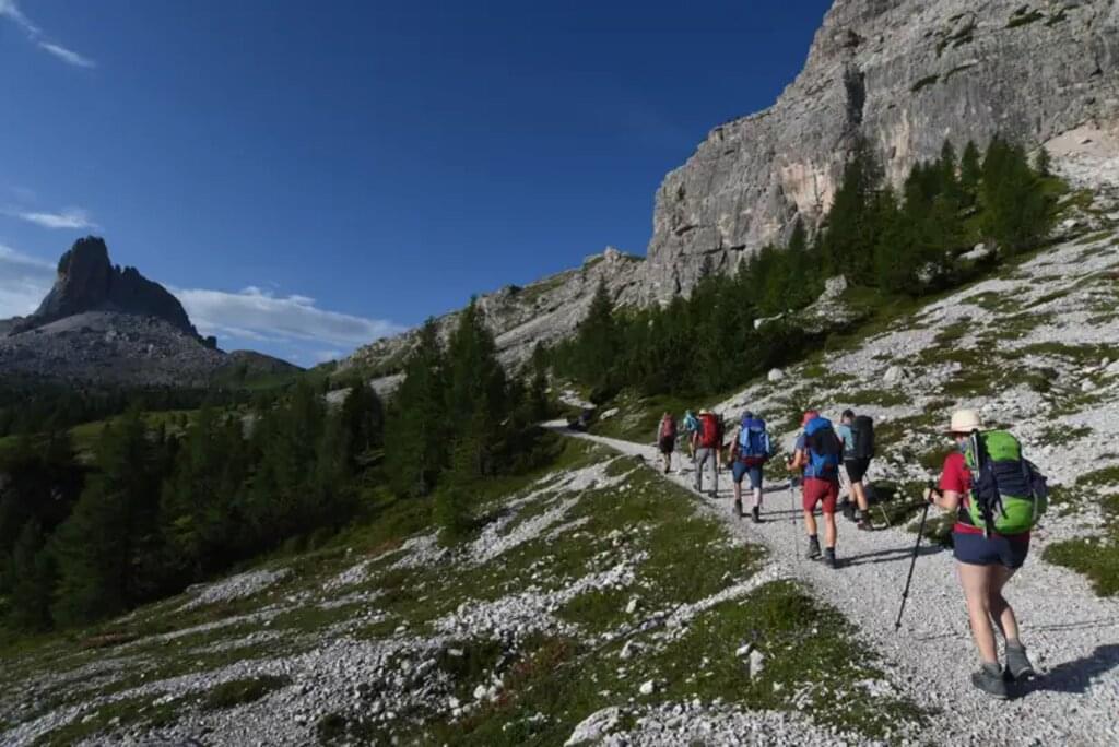 <Mit Blick auf die Cinque Torri beginnen wir unsere heutige Etappe mit einem ersten Abstieg. Schon nach wenigen Kilometern steigt der Weg wieder an und führt uns stetig in Richtung der Cinque Torri, die erhaben vor uns aufragen. Wir besuchen wir das kleine Kriegsmuseum mit alten Schützengräben, die einst Teil der Hochgebirgsfront im Ersten Weltkrieg waren. Nach der Umrundung der Cinque Torri legen im Rifugio Cinque Torri eine wohlverdiente Mittagspause ein. Mit einem letzten Blick auf die eindrucksvollen Felsentürme führt der Weg weiter hinab ins Tal, wo wir die Ponte de Ru Curto überqueren. Zum Abschluss steigen wir durch dichte Wälder hinauf zu unserem traumhaft gelegenen Tagesziel, dem Rifugio Croda da Lago Palmieri. -