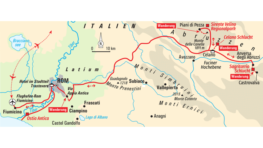 Wanderreise von der Ewigen Stadt bis in die Berge des antiken Römischen ReichsUnser langjähriger Partner und Hauser-Reiseleiter Giovanni Nori weiß, wie man Geschichten erzählt. Auf dieser Reise entführt er uns abseits der Menschenmassen in eine andere Zeit. Wir folgen den Pfaden der alten Römer von der majestätischen "Ewigen Stadt", über die alte Hafenstadt und versteckte Villenviertel in die beeindruckenden Berglandschaften des Römischen Reichs. Wir entdecken die Geheimnisse des antiken Rom und genießen die Schönheit der Regionen, die einst von den Römern bewohnt wurden.