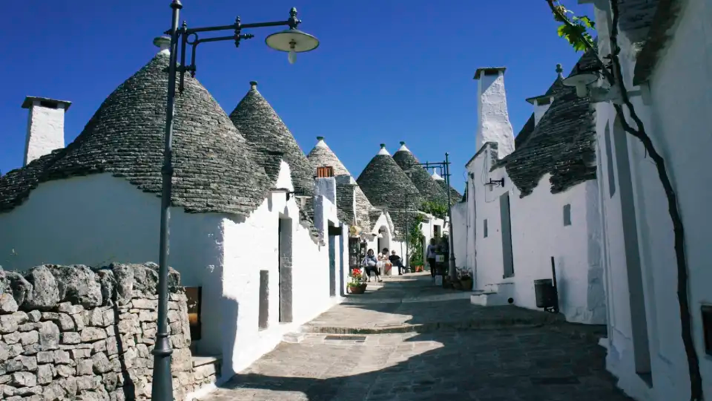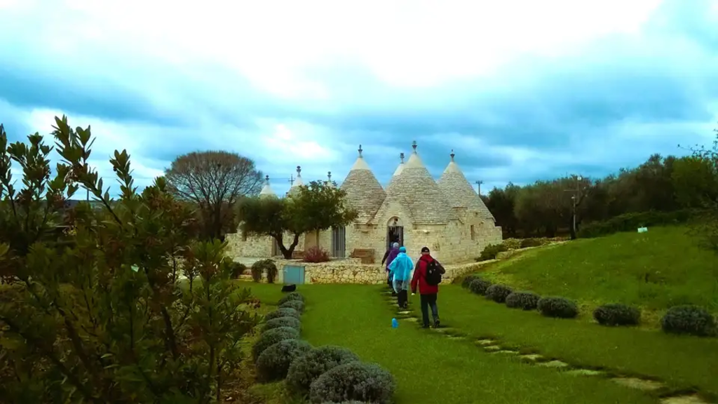 <Heute geht es ins Valle d'Itria, das sogenannte Tal der Trulli. Über die weitläufig besiedelte Karsthochebene wandern wir vorbei an den typischen Steinhütten (Trulli), deren Dächer wie Zipfelmützen zwischen den Trockensteinmauern und dem Grün der Gemüsegärtchen aufragen. Auf ehemaligen Maultierpfaden entdecken wir Schritt für Schritt eine alte Kulturlandschaft und erfahren nebenbei viel Wissenswertes über die Architektur der Trulli und die Traditionen ihrer Bewohner. In einem botanischen Garten sehen wir verschiedene, teils vom Aussterben bedrohte Obstsorten, stolz ist man hier besonders auf die über 500 verschiedenen Feigensorten aus ganz Italien und die raren Zitrusfrüchte. Weiter geht es in die "Trulli-Hauptstadt" Alberobello. Wir streifen durch die Straßen und werfen auch einen Blick ins Innere eines Trullo. -