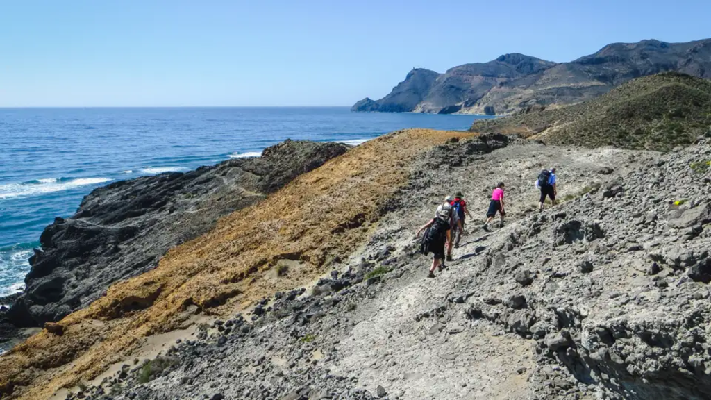 <Nach dem Frühstück besuchen wir den Botanischen Garten im nahen Rodalquilar und fahren anschließend auf der alten Minenstraße in das Herz des Naturparks. Wir steigen in der engen, schattigen und nach Norden ausgerichteten Schlucht von Requena mit ihrer nahezu "üppig-grünen Vegetation" im Vergleich mit der sonst eher kargen Landschaft, auf den Grad des Vulkankessels. Der Cerro Peñones (488 m) ist Teil des Kesselrandes der Caldera von Majada Redonda und bietet uns einen herrlichen Ausblick über den gesamten Naturpark und weite Teile seiner Küste. Von unserem luftigen Picknick Platz gehen wir den ersten Teil gemeinsam bis zum Einstieg in die Requenaschlucht zurück. Die geröllige Schlucht ist nicht für einen Abstieg geeignet, weshalb wir als Gruppe auf einem befestigtem Weg zum Fischerdorf La Isleta del Moro absteigen. Unsere Reiseleitung macht sich bereits auf den Weg zum Auto und trifft uns im Dorf wieder. Nach einer Pause mit Blick über die Bucht geht es zurück zu unserem Hotel. -