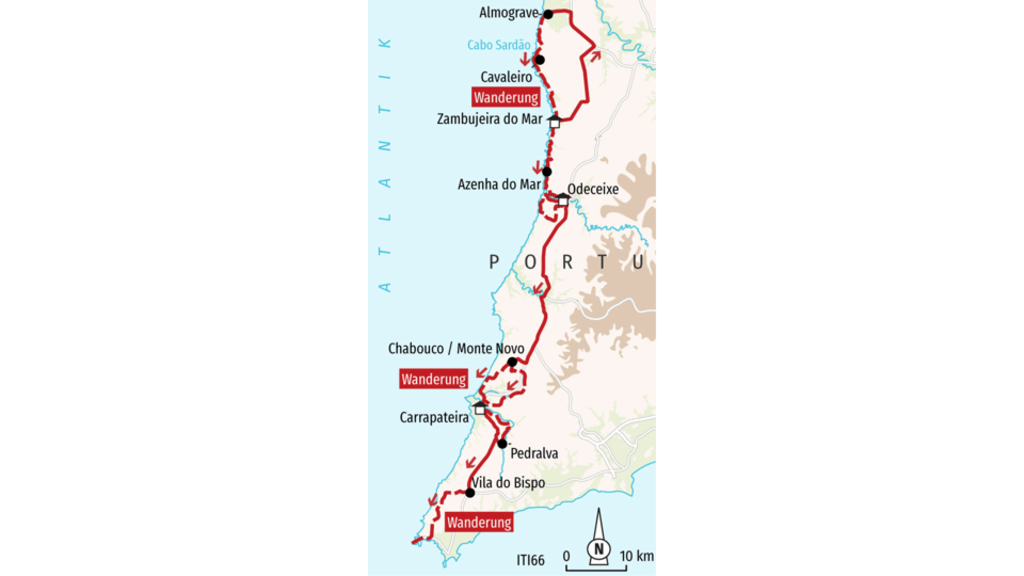 Wanderreise entlang der Rota Vicentina an der Westküste PortugalsSalzige Meeresluft weht Ihnen um die Nase, das Rauschen der Wellen begleitet Ihre Schritte – Sie wandern auf dem Fischerpfad entlang der wilden Westküste Portugals. Die Rota Vicentina führt Sie durch eine beeindruckende Küstenlandschaft: weite Strände, zerklüftete Klippen und der offene Atlantik stets im Blick. Sie durchstreifen die einsamen Dünen des Naturparks von Carrapateira und lassen den Blick schweifen, wenn am Cabo São Vicente die Brandung donnernd gegen die Felsen schlägt. Im Kontrast dazu zeigen Ihnen die Wanderungen ins fruchtbare Hinterland eine stillere Seite der Region: sanfte Hügel mit knorrigen Olivenbäumen, verstreute Dörfer und eine wohltuende Ruhe – weit entfernt vom Wind der Küste. Nach diesen ruhigen Momenten zieht es Sie wieder ans Meer zurück, wo spektakuläre Ausblicke und die Weite des Atlantiks auf Sie warten. Zwischen Almograve, Zambujeira do Mar und Odeceixe erleben Sie die authentische Küstenkultur Portugals. Ob beim Aufstieg zur Windmühle, beim Spaziergang durch kleine Gassen oder bei fangfrischem Fisch in einem der kleinen Hafenorte – diese Sefguided-Reise verbindet intensive Naturerlebnisse mit der entspannten Lebensart des Südens. Ein Wandererlebnis am atlantischen Ende Europas, das nachwirkt.