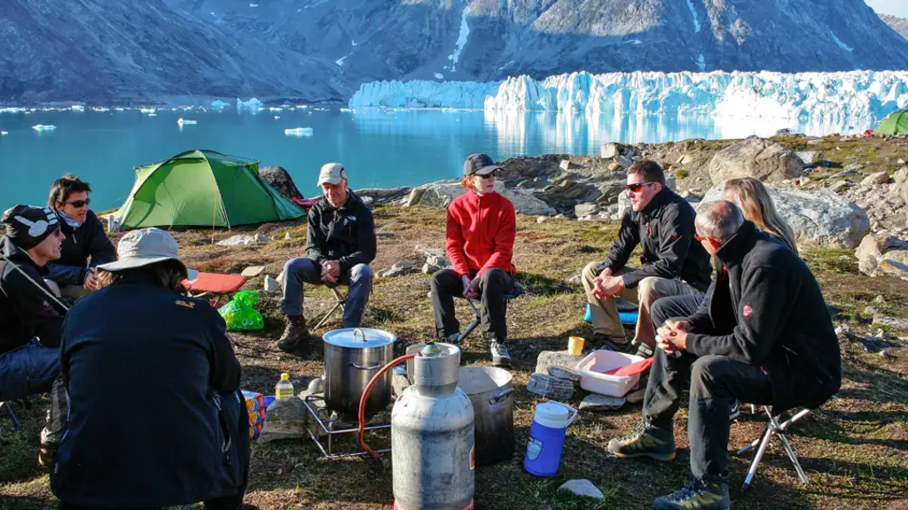 <Wir brechen unsere Zelte ab, verstauen das Gepäck im Boot und ziehen uns warm an. Hinter uns verschwinden die bunten Häuser von Tasiilaq und wir verlassen langsam den uns bekannten Kong-Oscar-Fjord. Die Jäger fahren uns entlang der rauen Küste Ammassaliks und manövrieren ihre Boote zwischen den Eisschollen hindurch zu unserem nächsten Camp im Sangmileq-Fjord. Wir gehen an Land und errichten unser Lager - wenn möglich wildromantisch an einem rauschenden Bach mit kleinem Wasserfall, der in den Fjord mündet. Vielleicht bleibt noch etwas Zeit für eine kleine Erkundungstour entlang des Fjords, bevor wir gemeinsam das Abendessen zubereiten und die Abendstimmung genießen. -