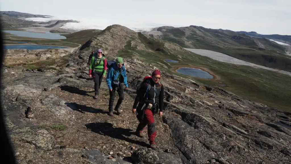 <Am Vormittag fahren wir zur nahe gelegenen ehemaligen Forschungsstation Kellyville, von der heute nur noch die Überreste übrig sind. Von dort unternehmen wir eine Rundwanderung auf dem ersten Abschnitt des Arctic Circle Trails, dem Fernwanderweg an der Westküste Grönlands. Unser Rückweg führt über die Hügelkette nördlich von Kangerlussuaq. -