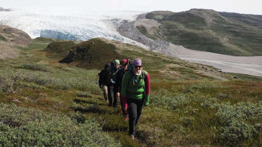<Mit dem Bus fahren wir zum Ausgangspunkt unserer Wanderung in der Nähe des Inlandeises. Die Natur ist vielseitig: Bewachsene Sanddünen, Weiden- und Birkengestrüpp, kristallklare Seen und ein breites Flussdelta warten auf uns. Vielleicht lassen sich auch Rentiere blicken? Wir wandern auf einem Höhenzug, teils auf Rentierpfaden, mit herrlichen Ausblicken auf das Inlandeis sowie das Flussdelta des Sandflugsdalen und bis an die Abbruchkante des Russel-Gletschers. Der Bus bringt uns zurück nach Kangerlussuaq. -