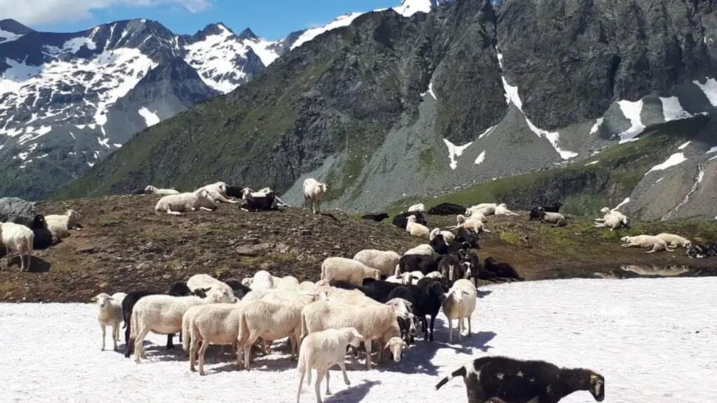<Nach einem ausgiebigen Frühstück geht es zunächst hinunter zum kleinen Gletscher-Stausee, bevor wir wieder bergauf wandern. Bald erreichen wir einen ausgesetzten Panoramasteig, der ein Teilstück des Wiener Höhenweges ist. Dieser führt uns zur Salmhütte. Nach einer erholsamen Mittagsrast machen wir uns an das letzte Stück unseres heutigen Aufstiegs. Mit 2.828 m haben wir an der Pfortscharte nun unseren höchsten Punkt der Tour erreicht. Auf der anderen Seite geht es wieder steil hinab und bald können wir schon unsere nächste Unterkunft erkennen. -