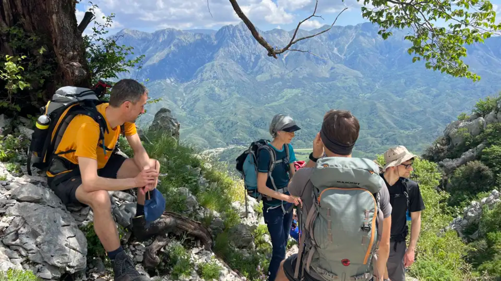 <Nach dem ersten, recht anstrengenden Wandertag lassen wir es heute etwas geruhsamer angehen. Auf der morgendlichen Wanderung durchs Shushica-Tal durchqueren wir eine Schlucht, durch die sich ein türkisfarbener Fluss windet, und wandern über Obstwiesen und durch lichten Wald, immer den Gipfel des Kendervices (2.121 m) vor uns im Blick. Zur Mittagszeit erreichen wir unser Ziel Vranisht, ein Dorf am Fuß des Cika (2.044 m). Bei unseren Gastgebern legen wir eine Kaffeepause ein – eine gute Gelegenheit, um mit den Einheimischen ins Gespräch zu kommen. Gestärkt brechen wir zum zweiten Teil der Wanderung auf. Entlang steiler und schattiger Ziegenpfade wandern wir zum "Tisch Gottes". Um die legendenumwobene Steinformation, Albaniens Miniatur-Stonehenge, ist man sich uneins. Ist es eine natürliche Formation oder prähistorisches Element aus dem Neolithikum? Der fabelhafte Blick übers Tal allein ist es ohne Diskussion wert. Zurück in Vranisht übernachten wir bei verschiedenen Familien im Dorf und werden wieder mit einheimischen Spezialitäten verwöhnt. -