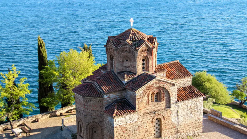 <Am Morgen machen wir uns auf in Richtung Nordmazedonien. Die moderne Straße führt entlang der antiken Via Egnatia, der ehemaligen Handelsroute auf dem Balkan. Auf unserer Fahrt Richtung Südosten machen wir regelmäßig Halt, zum Beispiel auf dem Qaf Thane-Pass. Den schönen Blick auf den weitläufigen Ohrid-See, die natürliche Grenze zwischen Albanien und Nordmazedonien, wollen wir uns nicht entgehen lassen. Wir besuchen das Dorf Lin am Seeufer, bewundern die alten Steinhäuser und werfen einen Blick in die Ruinen der Basilika. Bevor wir über die Grenze nach Nordmazedonien reisen, suchen wir uns noch ein Plätzchen für unsere Mittagsrast. Gut gestärkt überqueren wir die Landesgrenze und fahren zu unserem Hotel in der Stadt Ohrid. Wie wäre es mit einem abendlichen Bummel durch die Altstadt? -