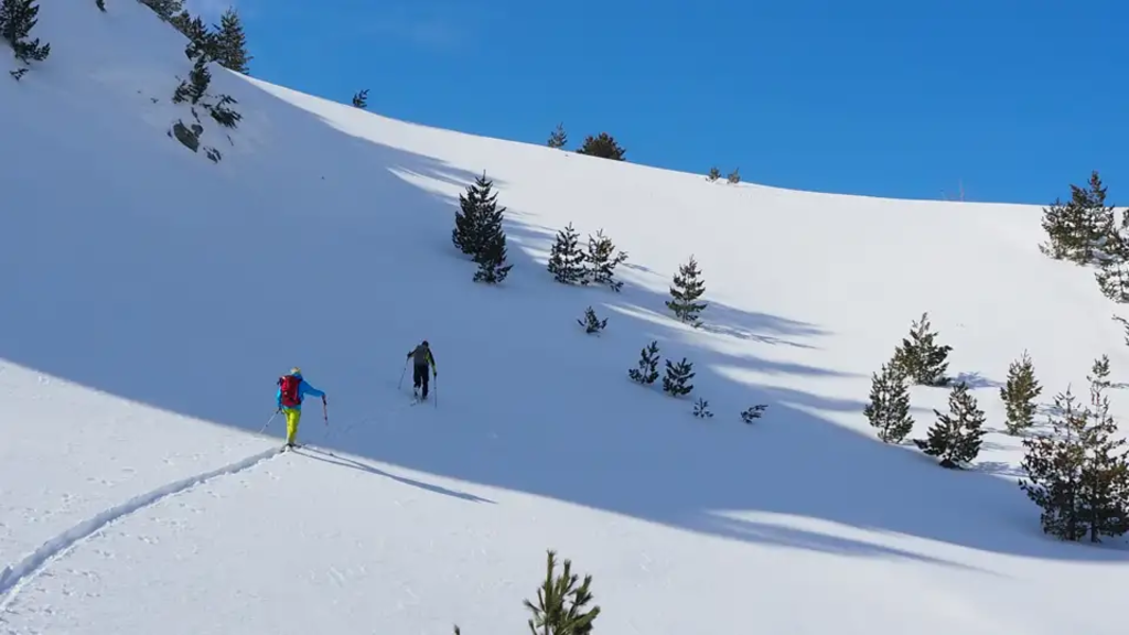 <Je nach Schneeverhältnissen starten wir die Königsetappe unserer Reise zunächst zu Fuß oder sogleich mit Fellen. Eine konditionell anspruchsvolle Tour führt uns durch ein mächtiges Hochtal zwischen den zwei Brüderbergen zu einem letzten Pass und schließlich auf den höchsten Gipfel Albaniens und des Kosovos (2.764 m). Der lange, aber technisch wenig anspruchsvolle Aufstieg wird mit Panoramablicken über Nordmazedoniens und Albaniens Hochländer belohnt. Auf dem Weg zurück ins Dorf werden unsere eigenen Aufstiegsspuren wahrscheinlich die einzigen sein, die wir auf der genussvollen Abfahrt kreuzen. Am Abend erfahren wir von unseren Gastgebern mehr über das Leben unter Diktator Enver Hoxha und das isolierte, kommunistisch geprägte Albanien. Welche Unterschiede und Gemeinsamkeiten gibt es zwischen den Albanern hier und im Kosovo damals und heute? -