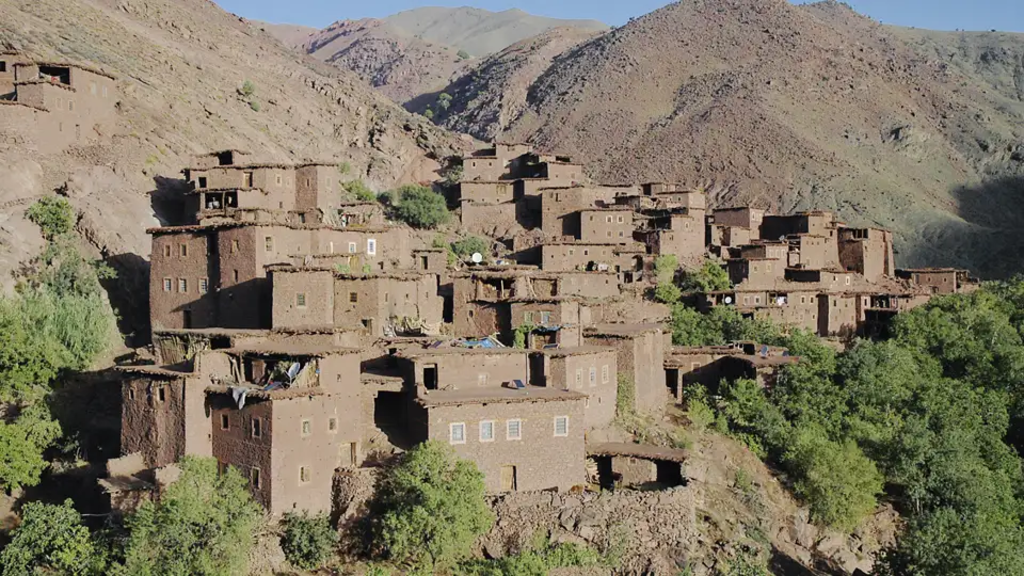 Unser Weg führt im Tal abwärts und die Landschaft wird zusehends grüner und fruchtbarer. Die Gegend ist bewaldet und es wachsen viele Walnuss- und Obstbäume. Wir kommen durch einige Dörfer aus den typisch verschachtelten Häusern aus Stampflehm und luftgetrockneten Ziegeln. Wir passieren Amezri - das größte und älteste Dorf im Tassaout-Gebiet. Unsere heutige Herberge beziehen wir im Ort Ait Ali n'Itto (1.820 m), wo sich zwei Bergtäler treffen.