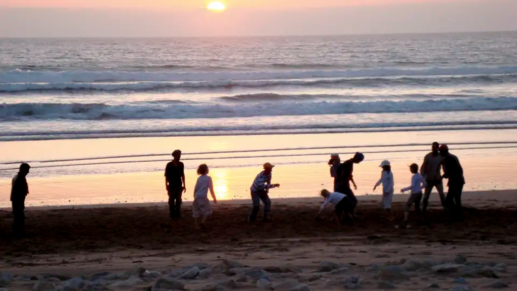 <Nachdem wir unsere Zelte abgebaut und gefrühstückt haben, begibt sich unsere Karawane auf den Weg durch das Land der Argan-Bäume. Argan bedeutet "Eisenbaum". Dieser endemische Baum wächst nur in Marokko zwischen Essaouira und Antiatlas. Der Weg führt uns an Dörfern des Berberstammes Ait Haha vorbei, so gewinnen wir einen kleinen Eindruck von der Lebens- und Wirtschaftsweise der Menschen hier. Wir haben auch die Möglichkeit eine lokale Familie auf einen Minztee zu besuchen (fakultativ). Durch bewachsene Dünen erreichen wir unseren Zeltplatz unter Dattelpalmen in der Nähe des Strandes, der auch zum Baden geeignet ist. -