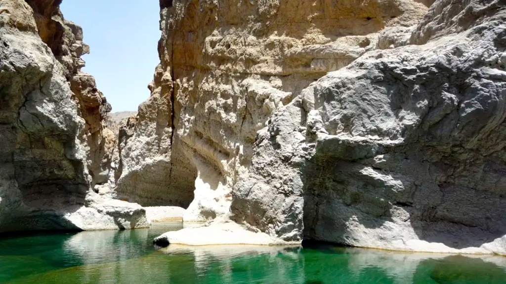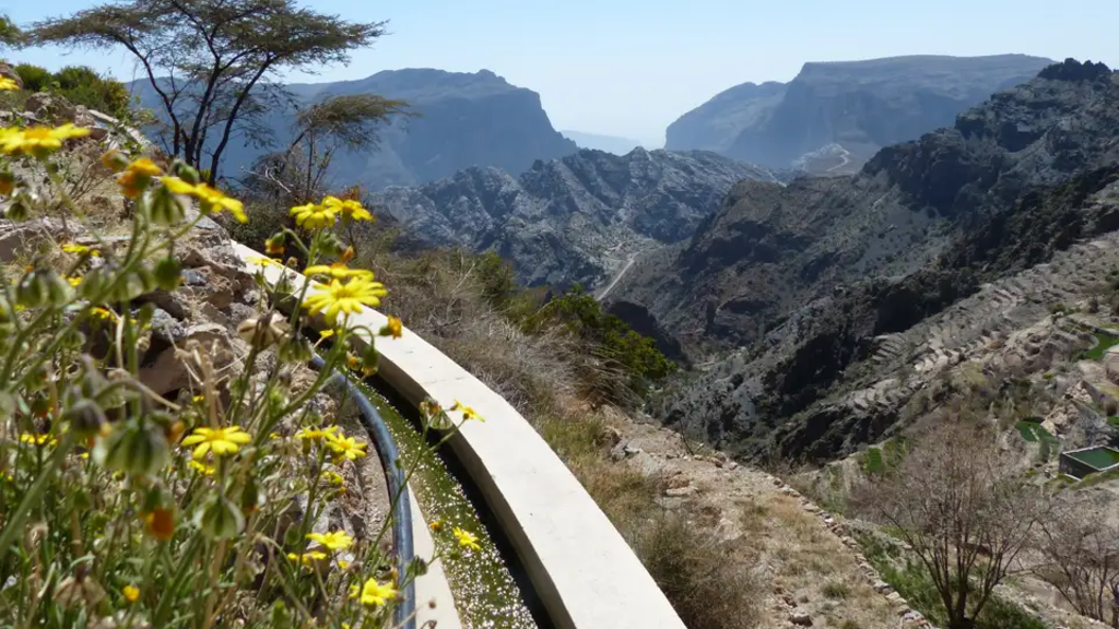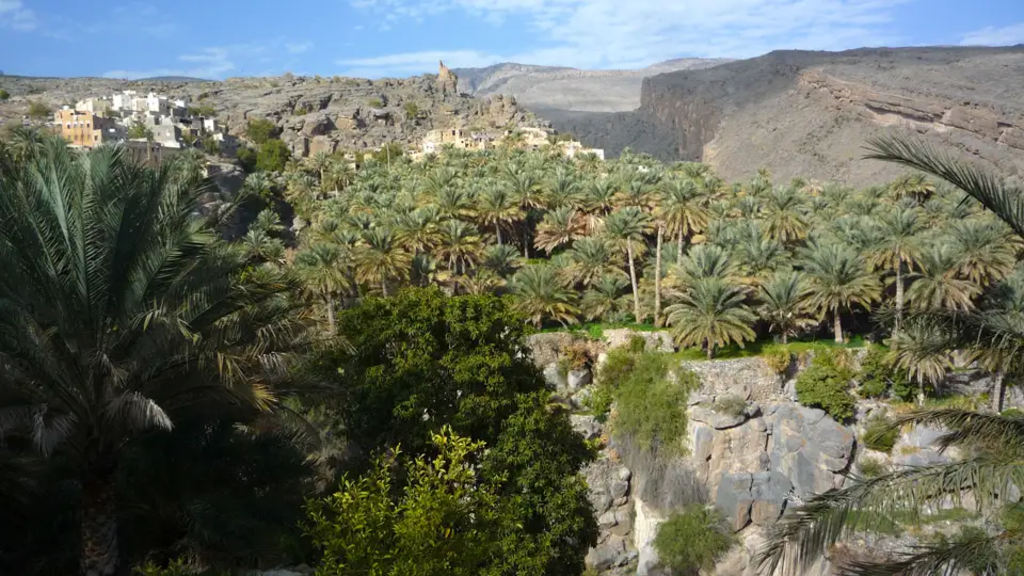<Nach dem Frühstück führt uns unsere Fahrt in die Täler der majestätischen Berge. Durchfurchte Hänge und geheimnisvolle Höhlen, atemberaubende Steilwände, schroffe Felsüberhänge und tiefe Schluchten präsentieren sich in einem nicht beschreibbaren Farbenspiel. Mit einer unglaublichen Vielfalt an Naturwundern zieht sich das Gebirge über eine Länge von fast 500 Kilometern durch das Sultanat. Es schiebt eine bis zu 3.000 Meter hohe Barriere zwischen den Golf von Oman und die Wüstenlandschaften im Innern des Landes.Wir starten unsere Wanderung in Bimah, einer Siedlung, in der die Häuser überwiegend in traditioneller Steinbauweise erbaut sind. Von hier gelangen wir nach Selma und durch eine enge Schlucht, in der entlang der Felswände die Palmengärten aus Dattelpalmen, Mangobäumen und Bananenstauden angelegt sind, erreichen wir Balad Sit. -