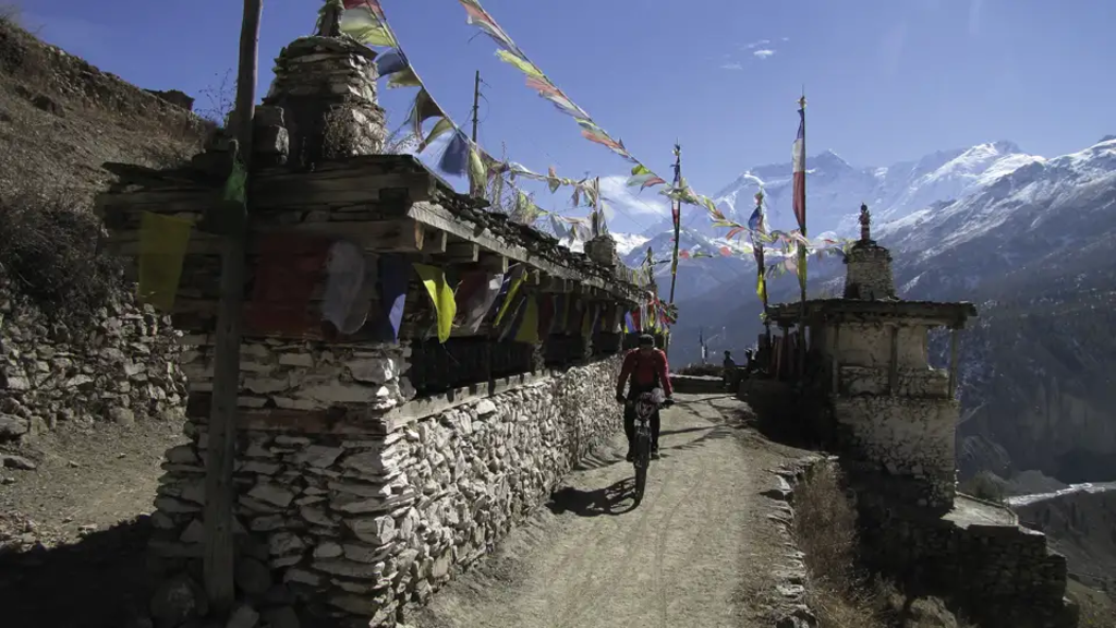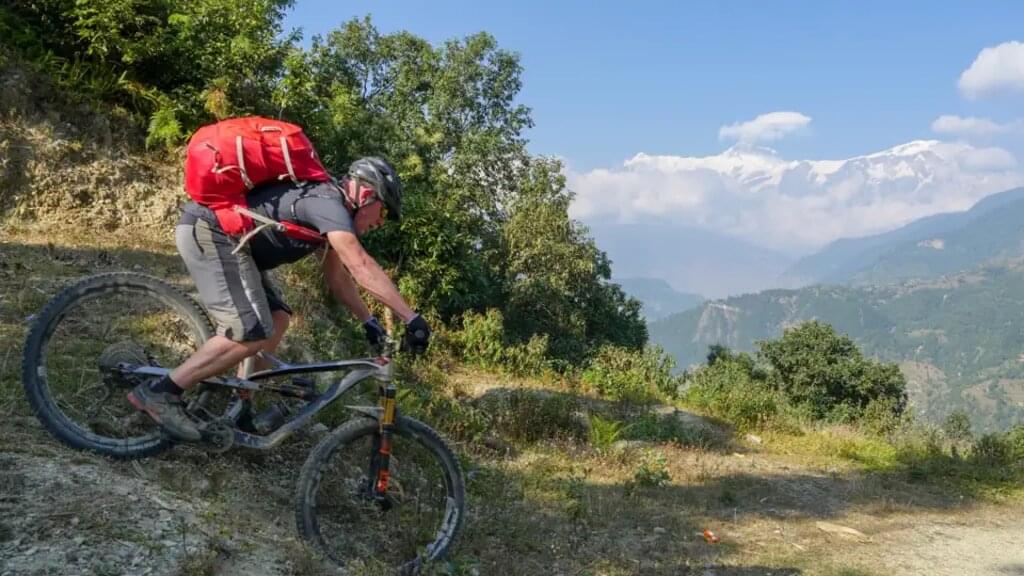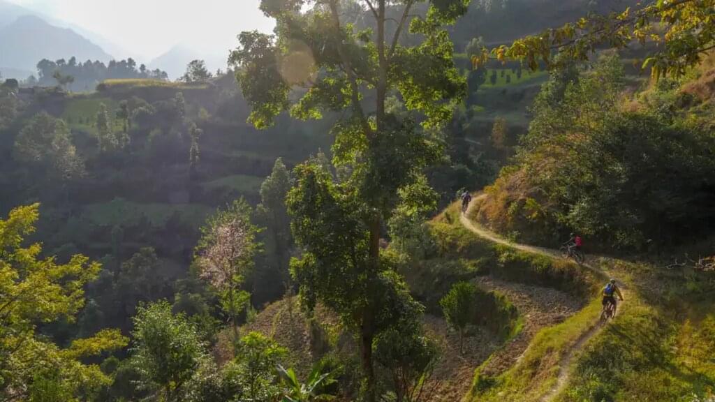 <Nach unserem Frühstück im Zeltcamp setzen wir die Tour abwechselnd im Down- und Uphill fort, überqueren zwei Pässe (am höchsten Pass in etwa 1.500 m genießen wir atemberaubende Blicke u.a. auf den Manaslu) und befahren herrliche "never-seen-before-Trails" durch kleinste Hüttendörfer. In einer charmanten Ortschaft in Flussnähe übernachten wir in einer Lodge. -