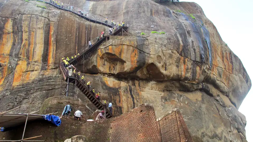 <Heute besichtigen wir den rot schimmernden Felsen, der sich knapp 200 Meter aus dem Grün der umgebenden Wälder und Wiesen erhebt. Viele, teils in den Stein gehauene Stufen führen auf sein Plateau. Über eine Wendeltreppe erreichen wir die Felsgalerie der Apsaras oder "Wolkenmädchen" - auf den Felsen gemalte Frauenbildnisse. Auf halber Höhe durchschreiten wir die gigantischen Pfoten einer ehemaligen Löwenskulptur. Wir steigen weitere Treppen hoch und erreichen das Gipfelplateau mit den Überresten des Palastes von König Kashyapa. Nachmittags begeben wir uns auf Safari in einem der nahegelegenen Nationalparks. -