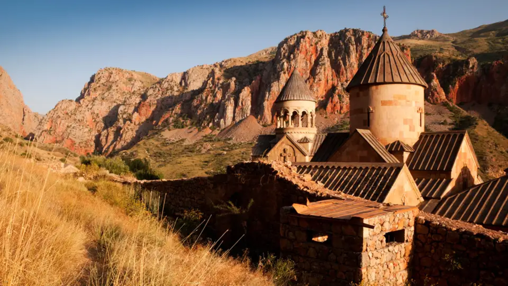 <Unser erstes Tagesziel ist heute das Kloster Chor Virap. Es liegt in unmittelbarer Nähe zur türkischen Grenze und von dort genießen wir einen herrlichen Blick auf den Berg Ararat. Entlang der Grenze und im letzten Stück über eine schmale Straße durch eine enge, felsige Schlucht fahren wir dann in das Dorf Amaghu in der Region Wajoz Dsor. Zu Fuß steigen wir hinab in die Schlucht und zum Ende der Wanderung hinauf zum Kloster Norawank. Mit etwas Glück erspähen wir unterwegs eines der seltenen und scheuen armenischen Mufflons. Nach dem Mittagessen brechen wir auf und fahren nach Goris, einer im Süden des Landes in einem grünen Talkessel gelegenem Kleinstadt. -
