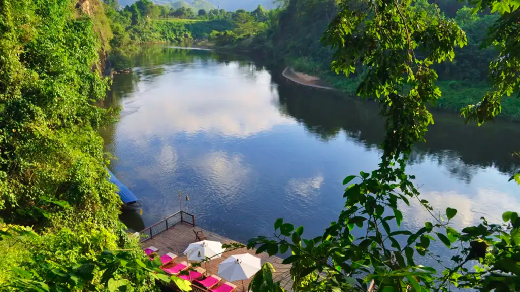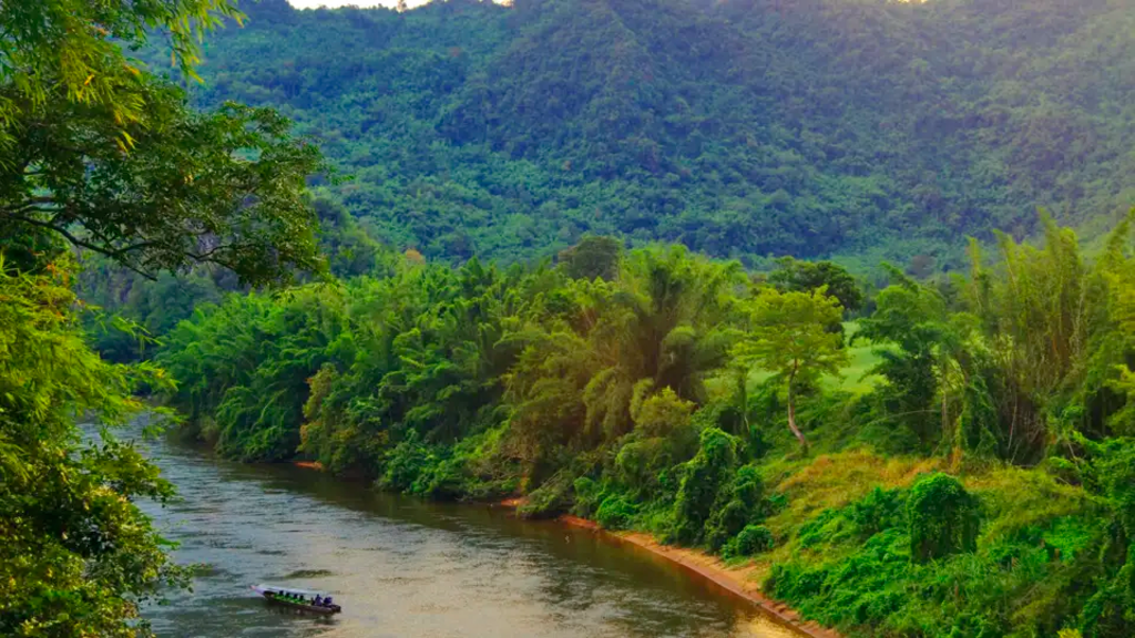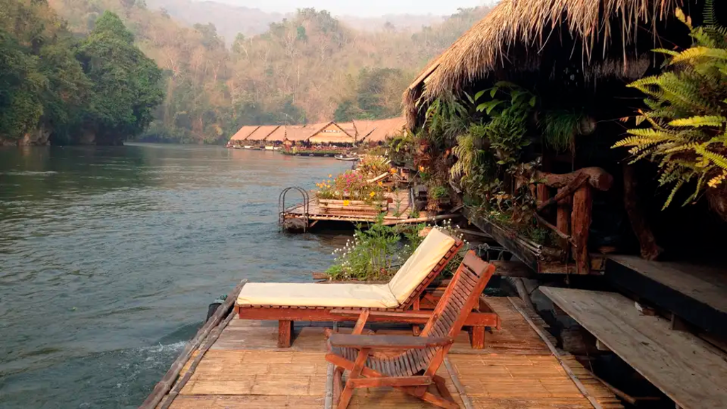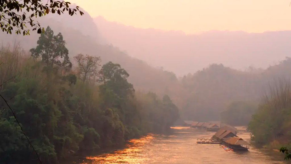 <Nach dem Frühstück beginnen wir unsere Fahrt hinaus aus der Metropole aufs Land. Bei einem Stopp in Nakhon Pathom besichtigen wir den mit goldenen Kacheln bedeckten Phra Pathom-Chedi. Weiter geht es nach Kanchanaburi, wo wir die berühmte Brücke am Kwai besichtigen. Wir steigen um in den historischen Zug und fahren flussaufwärts bis zum Bahnhof Sai Yok Noi (ca. 2,5 Std.). Von dort werden wir an eine Anlegestation gebracht und wechseln für die Weiterfahrt - und auch für die Nacht - auf den Fluss. Mit traditionellen "long tail" Booten fahren wir bis zu unserer heutigen Unterkunft (ca. 15 Min.), errichtet auf schwimmenden Holzflößen mitten im Regenwald. Elektrizität gibt es hier keine, romantische Stimmung umso mehr – vor allem, wenn am Abend Kerzen und Lampen angezündet werden und wir, nach einem kurzen Spaziergang in der Umgebung, unser Abendessen genießen. -