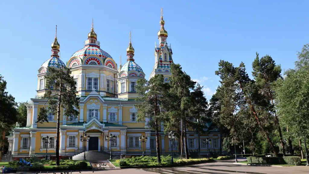 <Am Flughafen in Almaty werden wir von unserer Reiseleitung begrüßt und fahren gemeinsam zu unserem Hotel, wo wir bereits unsere Zimmer beziehen können. Nach einem späten Frühstück starten wir unsere Stadtbesichtigung. Wir spazieren durch den Panfilov Park, in dem sich unter anderem das Denkmal für Panfilovs 28 Gardisten und die schöne Christi-Himmelfahrt-Kathedrale mit ihren fünf goldenen Kuppeln befindet und besuchen das Staatliche Museum der Republik Kasachstan. Anschließend fahren wir mit der Seilbahn hinauf auf den Hausberg Kök-Töbe. Von hier lässt sich ein traumhafter Ausblick auf die Stadt genießen. Auf dem Berg befindet sich neben einem kleinen Vergnügungspark eine Bronzestatue für die britische Rockband The Beatles und der Fernsehturm von Almaty. Beim gemeinsamen Abendessen lassen wir den Tag ausklingen. -