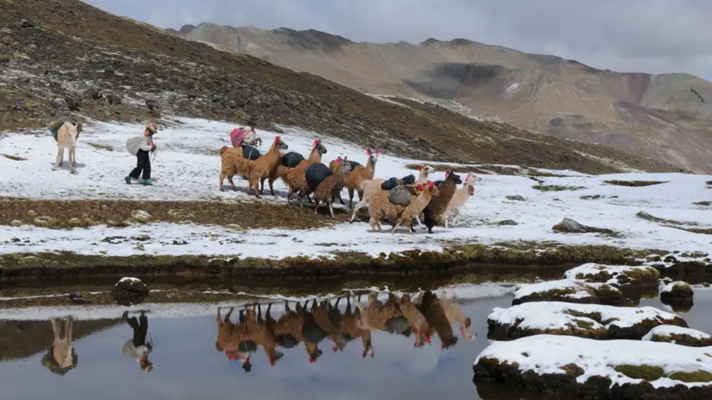 Trekkingreise von Cusco bis in die Cordillera VilcanotaBunt gestreifte Sedimenthügel, schneebedeckte Anden-Gipfel, die sich im türkisfarbenen Wasser der Gletscherseen spiegeln, geheimnisvolle Inkastätten inmitten der Bergwelt. Lama- und Alpakahirten begleiten uns auf dem mehrtägigen Trekking auf versteckten Inkapfaden durch das Gebirge der Cordillera Vilcanota – den 6.384 m hohen Apu Ausangate haben wir immer im Blick. Bei klarem Wetter ist er sogar von der Inkahauptstadt Cusco aus zu sehen. Sein Gipfel gilt für die Andenvölker als "Apu", als heilige Berggottheit, als Beschützer der Bewohner und ihrer Tiere. Unsere "Andenkamele" sind unsere treuen Weggefährten und übernehmen den Gepäcktransport. Die ersten Sonnenstrahlen begrüßen uns und lassen den Vinicunca in seiner Farbenpracht noch intensiver leuchten. Der Vinicunca wird daher gerne "Rainbow Mountain" – der Regenbogenberg – genannt. Dieser spektakuläre Fotospot ist aber nur einer der vielen Highlights auf dem Apu Ausangate Lodge-Trekking. Wir überqueren zu Fuß Pässe mit über 4.500 m und genießen atemberaubende Weitblicke über die Anden. Während des Trekkings sind die Lodges der Organisation "Camino del Apu" unser komfortables Zuhause. Dabei tragen wir dazu bei Arbeits- und Ausbildungsplätze zu sichern und Landflucht zu verhindern, denn die Betreiber der Unterkünfte sind die Dorfbewohner selbst. Freuen Sie sich auf ein Trekking mit einem richtigen Dach über dem Kopf, einer heißen Dusche im Zimmer, bester Verpflegung durch lokale Köche und intensiven Begegnungen mit Hirten und Dorfbewohnern in wunderschöner Natur!