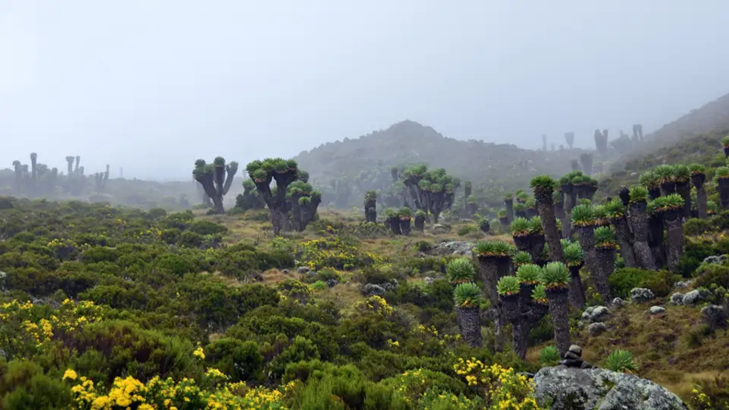 <Je mehr wir an Höhe gewinnen, wird die Vegetation allmählich buschiger und niedriger. Nach kurzer Zeit erreichen wir den Übergang vom Regenwald zu den sogenannten "Moorlands", das Hochmoor. Wir kommen vorbei an den berühmten Kilimanjaro-Senecien und erspähen zum ersten Mal den mächtigen Gipfelaufbau des Kibo, wenn es das Wetter zulässt. Die heutige Etappe ist etwas länger, als die Gestrige. Zur Mittagsrast lädt ein kleiner Picknickplatz am Wegrand ein, er wird "Kimangi Marangu" genannt und war früher ein bedeutender Platz für die traditionell spirituellen "Regenmacher". Weiter bergauf erreichen wir voraussichtlich am frühen Nachmittag die Horombo-Hütten (3.720 m). Nach einer kurzen Pause sollten wir noch eine Akklimatisierungswanderung unternehmen, die unserer Höhenanpassung zuträglich ist und uns besser schlafen lässt. -