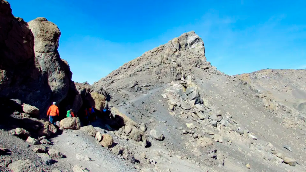 <Der heutige Tag dient der wichtigen Akklimatisation! Von den Horombo-Hütten brechen wir nach dem Frühstück auf und wandern in Richtung Mawenzi. Der Pfad führt zunächst sanft bergauf, bald lassen wir die üppigere Vegetation der unteren Höhen hinter uns und bewegen uns in der kargen Landschaft der hochalpinen Zone. Schon von Weitem sehen wir die dunkle Silhouette des Mawenzi (5.148 m), dessen gezackte Gipfel schroff in den Himmel ragen. Unterwegs passieren wir den sogenannten Zebra Rock auf 4.200 m, einen auffälligen Felsen mit markanten schwarzen und weißen Streifen, der einen eindrucksvollen Fotostopp bietet. Hier entscheiden wir gemeinsam, ob wir zur Mawenzi-Hütte auf 4.350 m weiterwandern oder an diesem Platz unser Mittagessen genießen. Danach kehren wir entspannt zu den Horombo-Hütten zurück. Diese zusätzliche Tour auf größere Höhe und das anschließende Absteigen unterstützen die Anpassung an die dünner werdende Luft und steigern unsere Chancen, den Gipfel erfolgreich zu erreichen. -