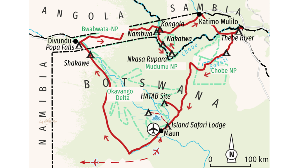 Wander- und Safari-Reise mit naturnahen Camps von Maun rund um das Okavango Delta bis zu den Tsodilo HillsDie Kalahari, eine der größten Sandflächen der Welt. Heiß, staubig und trocken - wären da nicht Flüsse wie Okavango, Kwando, Linyanti oder Chobe, die aus der Wüste im Grenzgebiet zwischen Botswana und Namibia ein Tierparadies der Extraklasse machen. Gespeist aus dem Hochland von Angola sorgen sie für die größte Tierkonzentration und das beste Safarigebiet Afrikas. Wie ein roter Faden zieht sich dieser Kontrast zwischen Wasser und Wüste durch das einmalige Ökosystem rund um das Okavango Delta und den Caprivi-Streifen. Unser Wüstenfuchs Egmont Strigl hat sich eine ganz besondere Route ausgedacht. Ohne größere Fahrstrecken bewegen wir uns auf dieser Sondertour zu Fuß und mit Booten inmitten dieses Mosaiks aus Wüste und Sumpf, Wäldern und Savannen, gehen mit unseren Geländefahrzeugen auf spannende Pirschfahrten und haben durch viele Doppelübernachtungen in ausgewählten Bushcamps viel Zeit und Muße, um den Tierreichtum im grünen Herzen der Kalahari ausgiebig zu genießen. Die beeindruckenden Elefantenherden im Chobe National Park, die Löwen und Wildhunde in den weiten Ebenen von Savuti, die Nilpferde und Lechwe Antilopen in der Moremi Game Reserve, die Büffel und Rappenantilopen im Bwabwata National Park oder den einmaligen Vogelreichtum in den Flussgebieten des Kavango und Kwando. Und all das zum optimalen Reisetermin im Juli und August: auf dem Höhepunkt der Trockenzeit und zum höchsten Wasserstand.