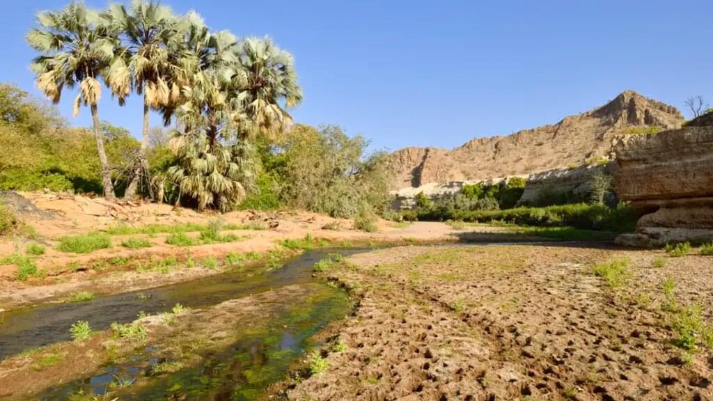 <Nach dem Frühstück verlassen wir unser malerisches Camp an der Spitzkoppe und fahren durch leere, weite Wüstenlandschaften hinauf nach Norden, wo jenseits des Omaruru Riviers das Reich der legendären Wüstenelefanten beginnt. Nach einem Einkaufsstopp in Uis geht es dann weiter zum Brandberg, der sich schon die ganze Fahrt über markant am Horizont abzeichnet. Dieses höchste Bergmassiv Namibias besteht aus 130 Millionen Jahre altem Granit, hat einen Durchmesser von knapp 25 km und kulminiert im 2573 m hohen Königstein. Zu seinen Füßen quartieren wir uns auf der Brandberg White Lady Lodge ein und haben, falls genug Zeit bleibt und die Tiere in der Nähe sind, die Möglichkeit, einen optionalen Gamedrive zu den Wüstenelefanten im Ugab Rivier zu unternehmen. Falls die Chancen heute schlecht stehen, haben wir am Folgetag noch einmal die Gelegenheit. Ansonsten verbringen wir einen entspannten Nachmittag und können die Annehmlichkeiten der Lodge wie den Pool oder die Bar nutzen. -